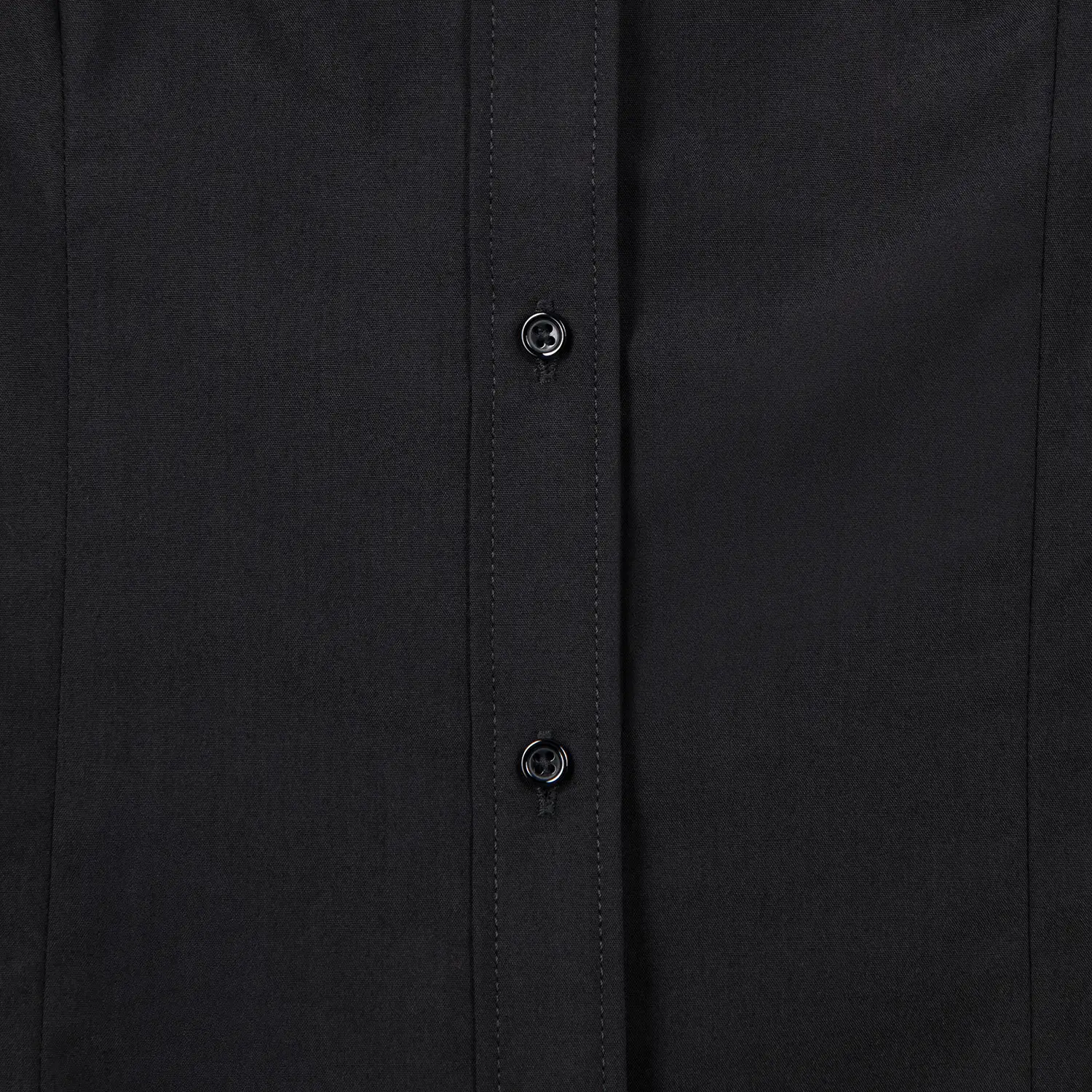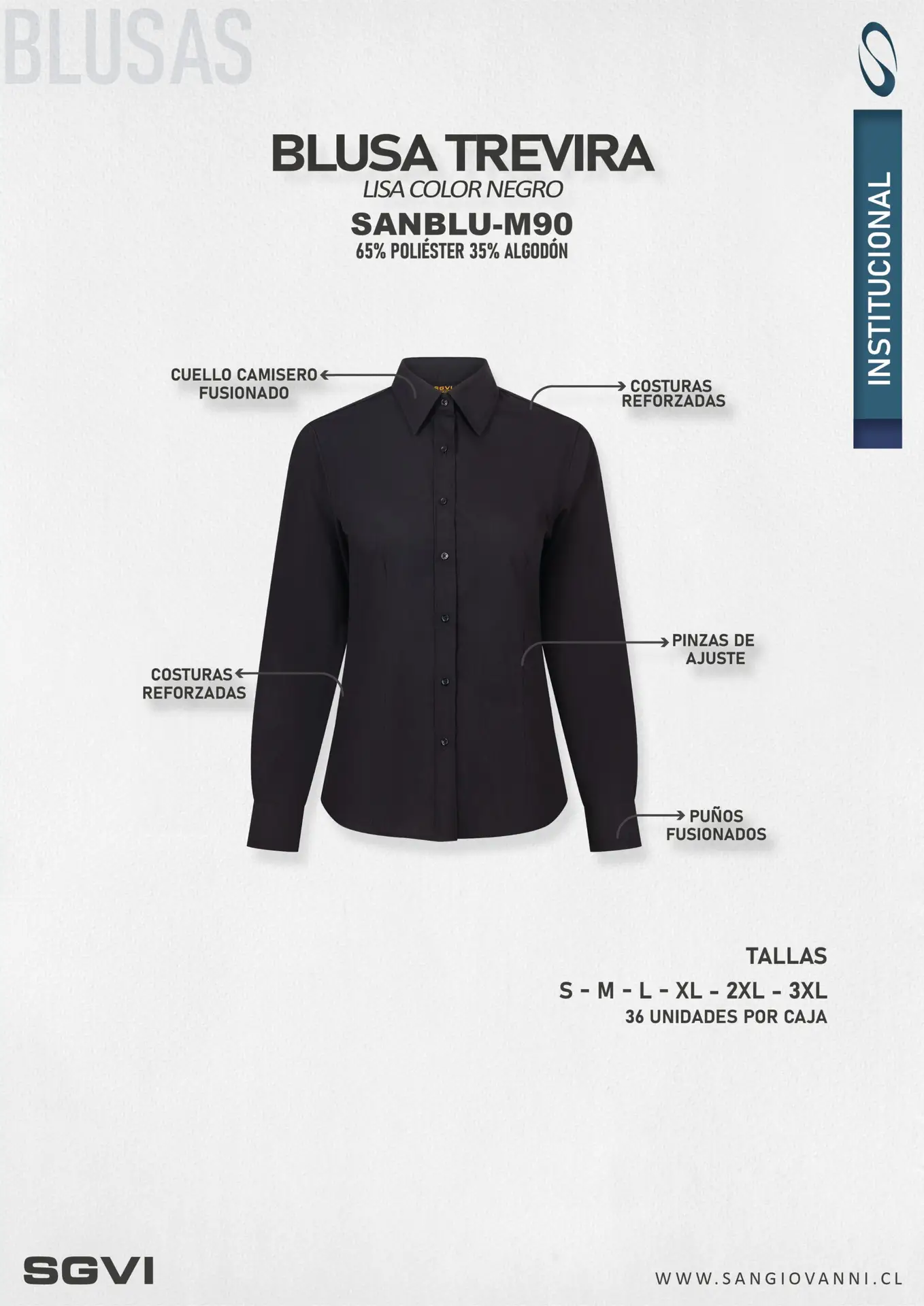 Perfecta para oficina, uniformes o uso diario, esta blusa negra de mujer en tela Trevira combina estilo, comodidad y larga vida útil.