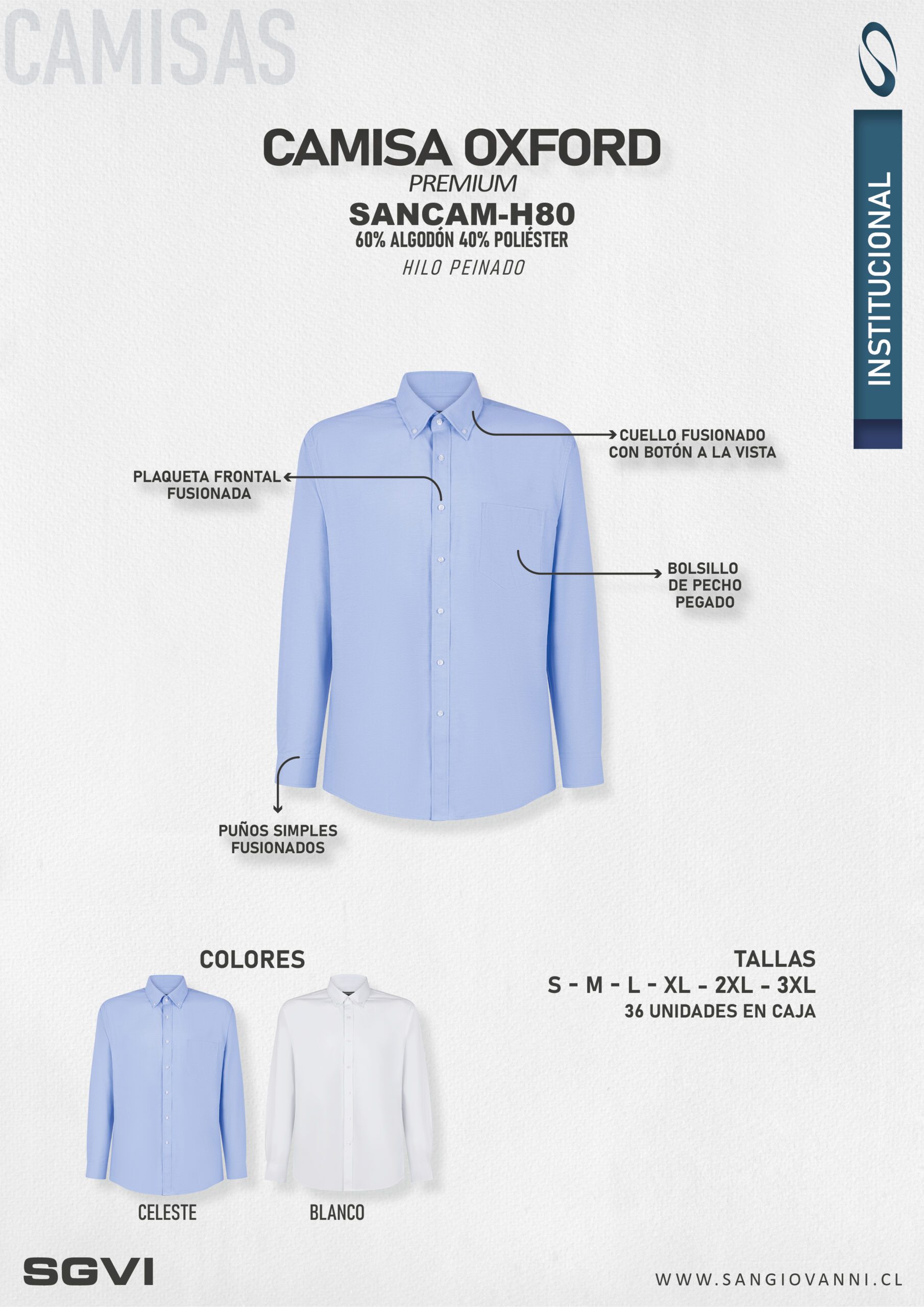 Camisa de hombre confeccionada en tela Oxford de alta calidad, de manga larga y calce regular, ideal para trabajo, uso corporativo o vestimenta formal diaria. Incorpora cuello con botones a la vista y bolsillo aplicado en el pecho, combinando funcionalidad con una estética clásica y profesional.