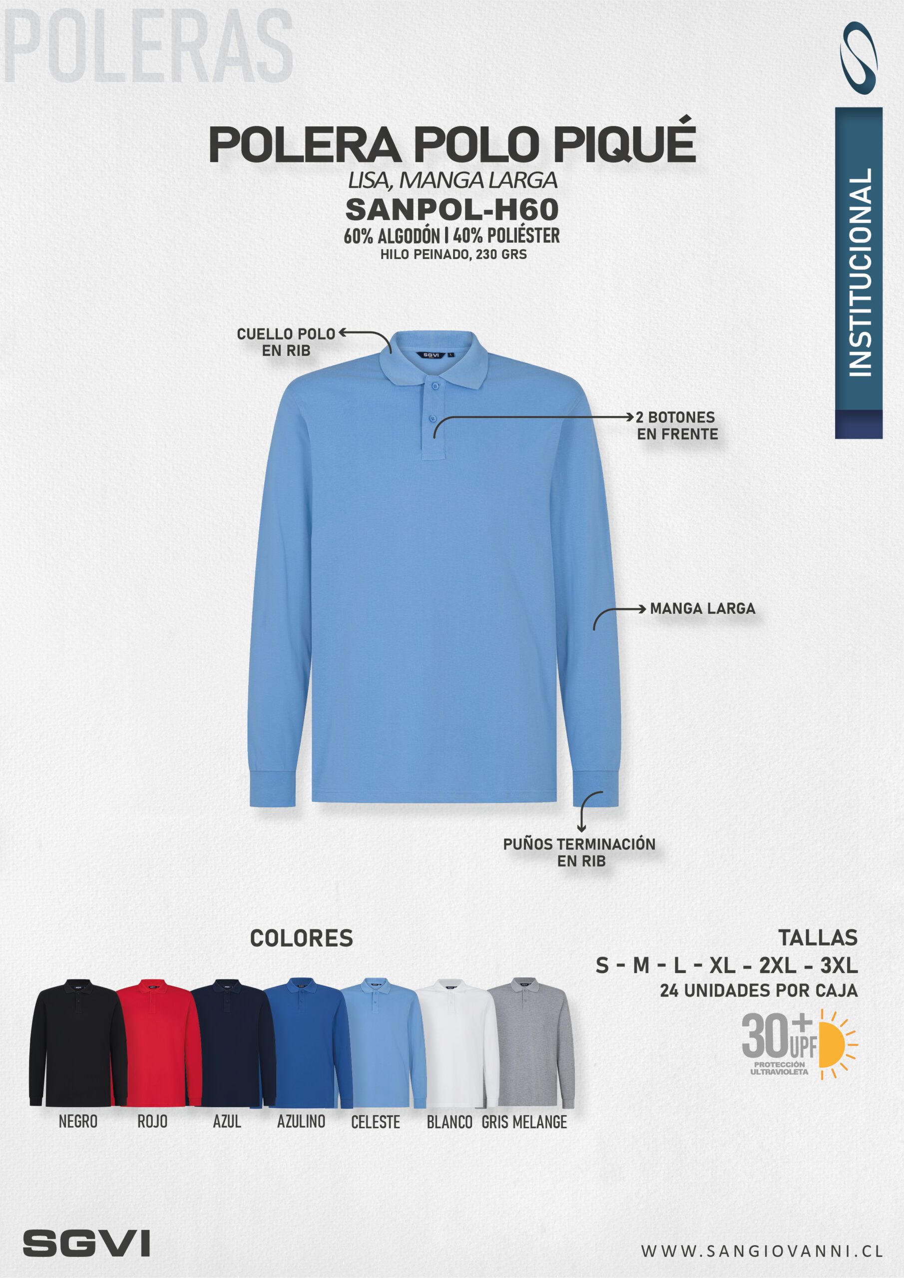 Polera tipo polo confeccionada en tela piqué de hilo premium peinado, que entrega una textura suave, mayor durabilidad y una excelente presentación. Diseño de manga larga y color liso, ideal para trabajo.